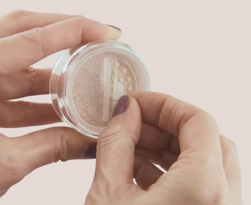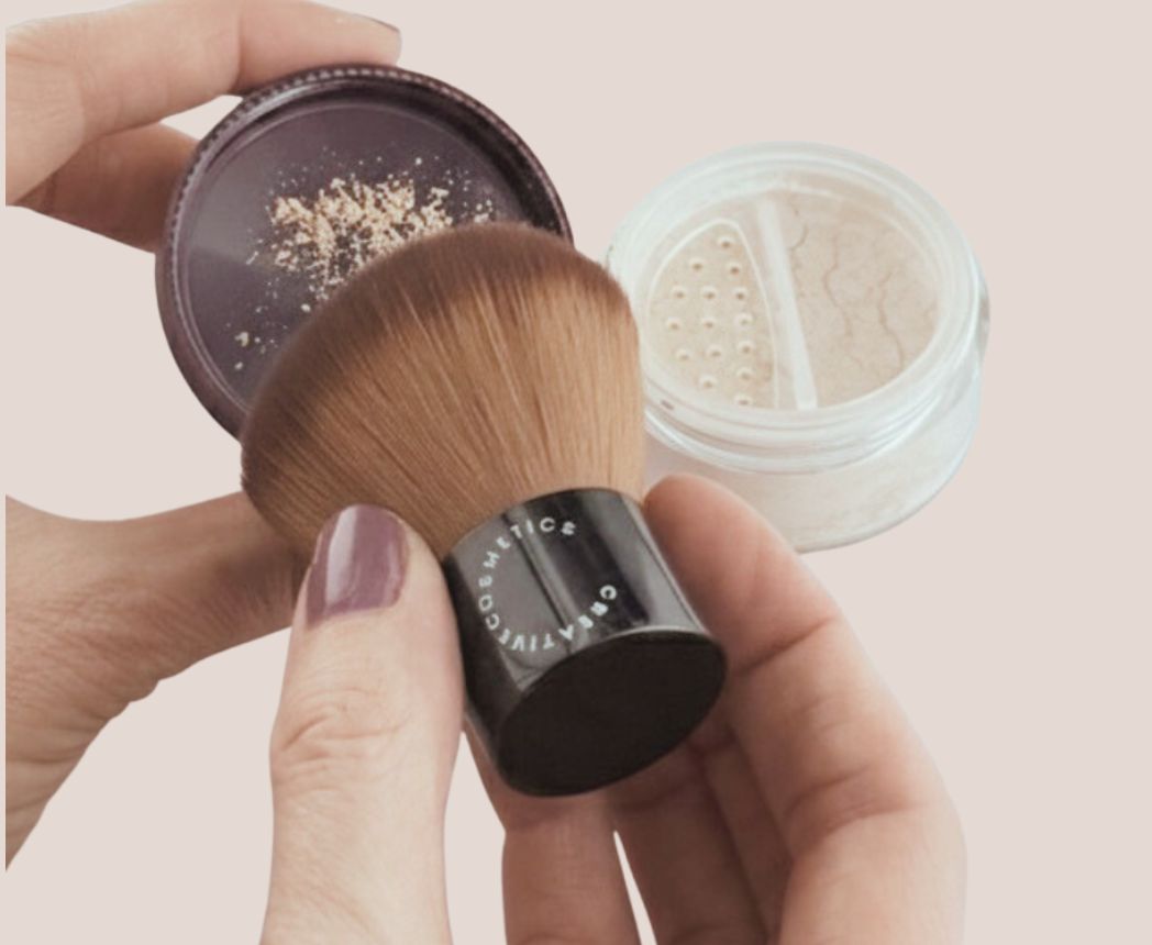 The powder is now ready to use, make a gentle circular motion on the face to blend the powder with the skin oils. Less is more, build coverage in layers.